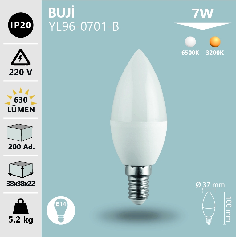Güç Tüketimi: 6 Watt Duy Tipi: E14 (ince duylu) Ampul Tipi: Top şeklinde LED Işık Rengi: Gün Işığı (Natural White – yaklaşık 4000K) Enerji Verimliliği: Yüksek, A+ sınıfı Çalışma Ömrü: Yaklaşık 15.000 – 20.000 saat Anında Tam Işık: Açıldığında bekleme yapmadan tam parlaklık Kullanım Alanları: Avizeler, masa lambaları, aplikler ve dekoratif aydınlatma ürünleri Geleneksel akkor ampullere göre %80'e varan enerji tasarrufu sağlayan bu LED ampul, hem ev hem ofis kullanımında güvenilir bir tercihtir. Isınma yapmaz, çevre dostudur ve sık açma-kapama işlemlerine karşı dayanıklıdır.